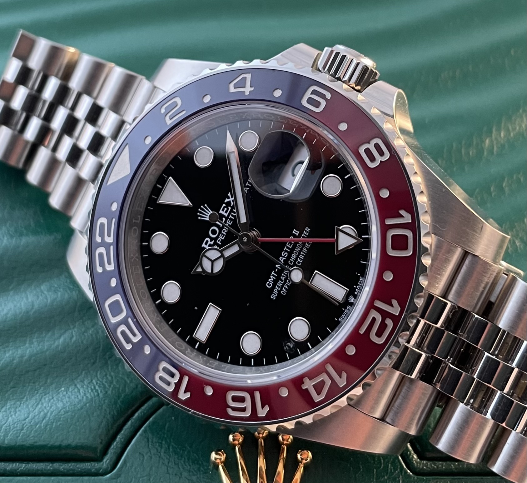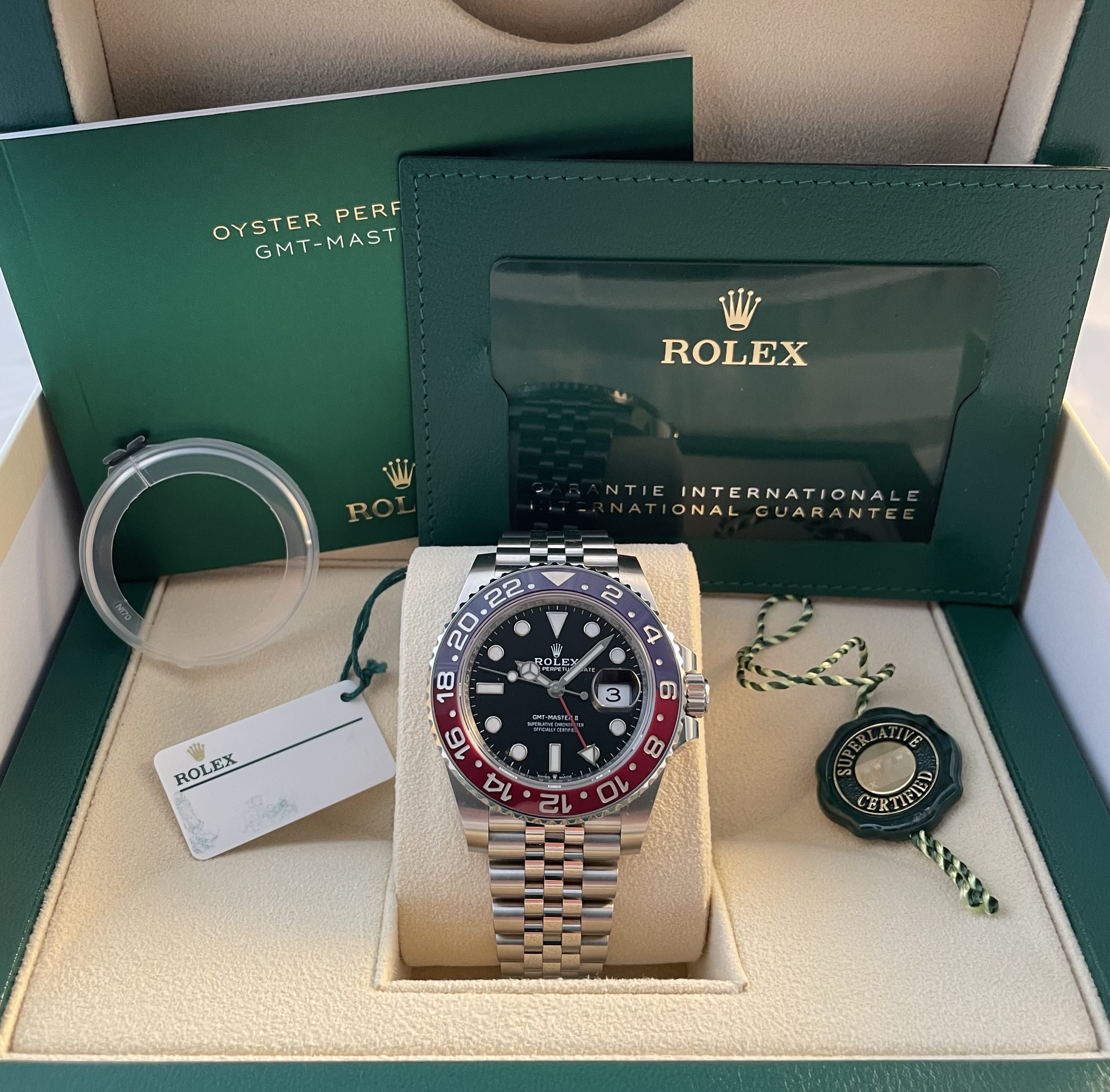 Rolex GMT-Master II 126710BLRO NL geleverd in 2022 40mm De Pepsi Rolexgarantie tot 07/2027 Geheel compleet en in mooie staat